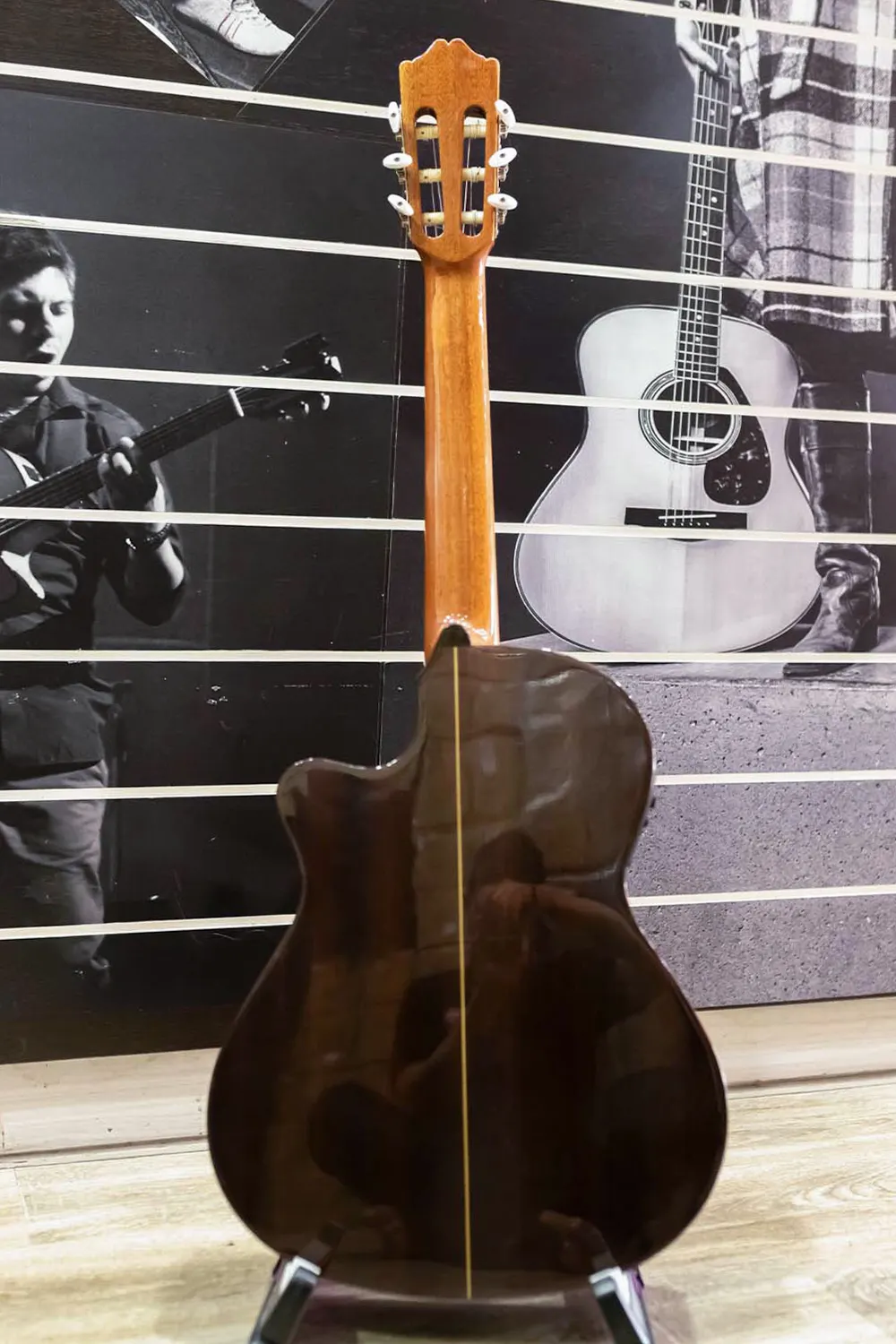 Thiết kế cutaway cùng thùng đàn cổ điển giúp người chơi dễ lên cao nhưng vẫn giữ được độ vang mượt và màu âm ấm áp.